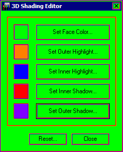 As I'm sure many of you know, when using the Windows Classic visual style, you can customize the colors of pretty much anything. However, unlike in Windows 3.1, when you change the color for 3D objects, such as buttons and dialogs, the highlight and shadow colors automatically change with it. This may seem nice, but what if you want to specify your own colors for this? Windows doesn't provide any method for this, except for editing the registry or theme files, which can be very inconvenient when you just want to see what it looks like. However, this program can change these colors independently.